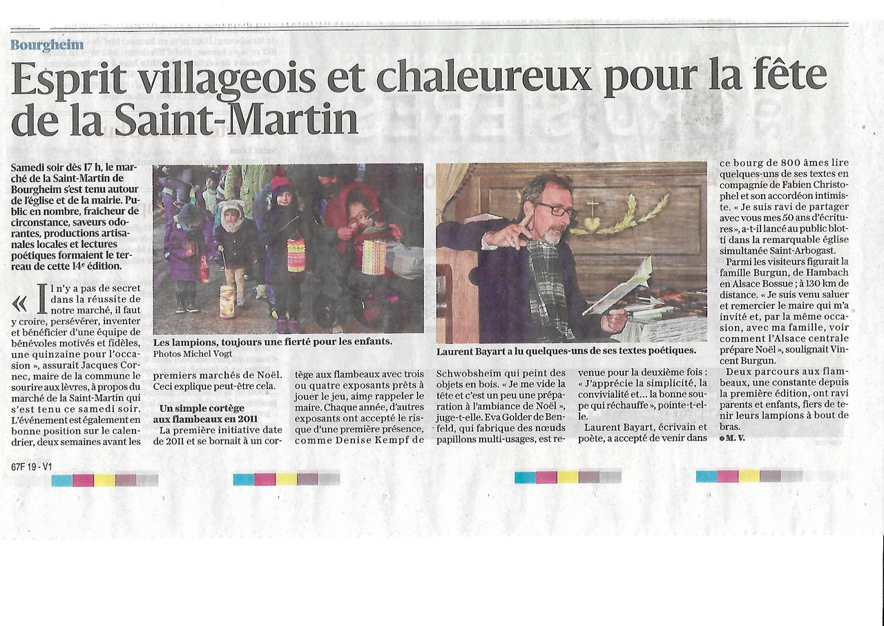 - lecture musicale de Noël à la bibliothèque municipale de Diemeringen, le samedi 23 novembre 2024 à 11h, autour de mon livre « Le Magicien en manteau rouge », avec Nicolas Meyer à la guitare électrique et Anthony Luttmann à la contrebasse.